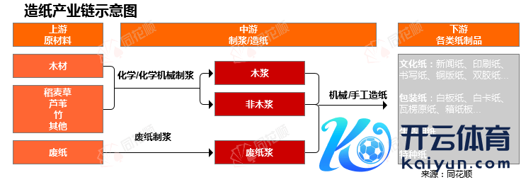 造纸产业链由上到下,辨认是上游原材料(废纸、纸浆),中游造纸工业厂(输出各自纸成品),卑鄙纸成品加工商(输出纸箱、烟盒等包装材料),最背面向末端用户。