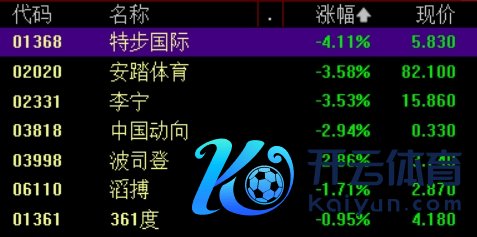 特步海外跌超4%,安踏体育、李宁跌超3%,波司登、中国动向等跟跌。